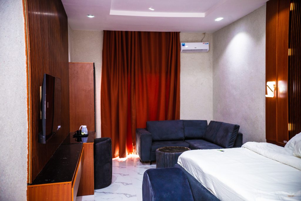 One One B Hotel, Asaba is a modern and stylish hospitality destination ideally located just five minutes from Asaba International Airport. The hotel features well-appointed rooms, some of which offer a clear, relaxing view of the airport, making it a perfect choice for business and leisure travellers alike.